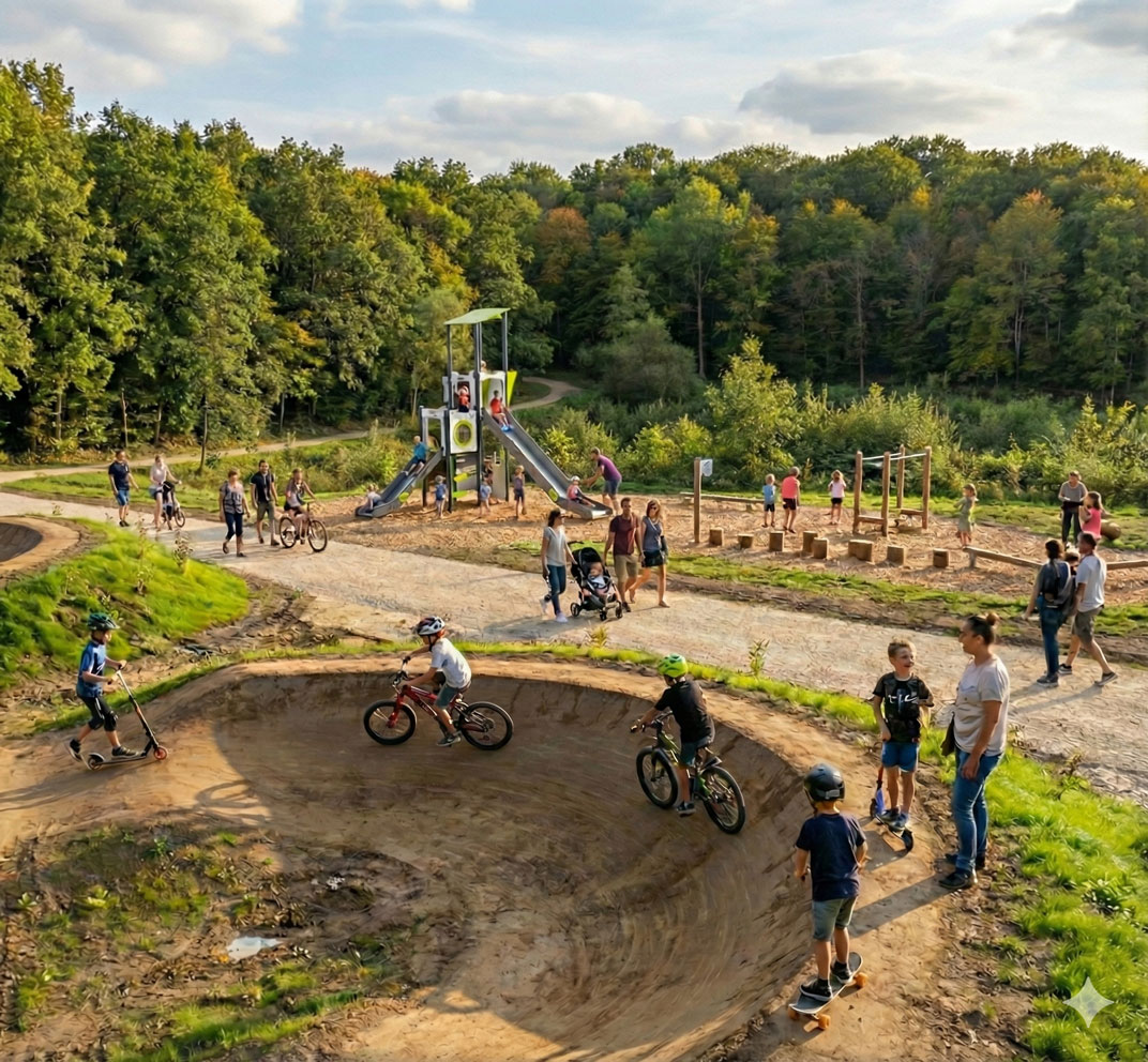 City stade, pumptrack, aires de jeux et promenades autour de l'étang...